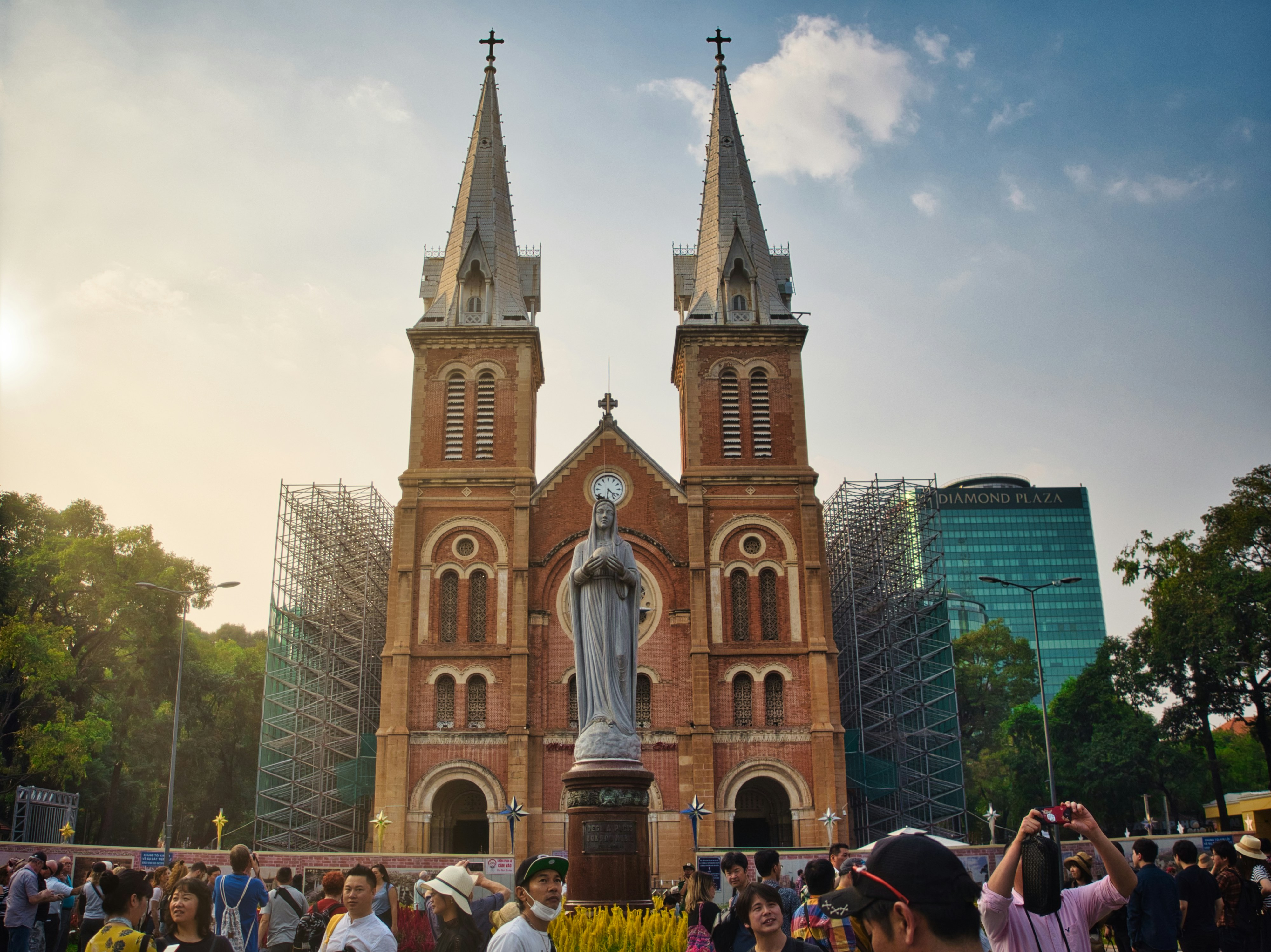 La fameuse cathédrale de la ville (anciennement Saigon). C'est un immanquable lors de ton passage pour visiter Ho Chi Minh. Elle a elle aussi été construite par les Français 1877 à 1880. Personnellement elle était en rénovation quand j'y suis allée, donc je n'ai absolument rien pu voir au sens littéral du terme.