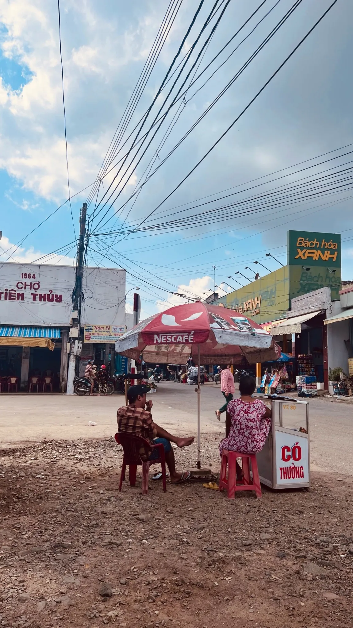 Pour couper un peu la route, on a prévu de manger dans une petite ville du nom de Vung Liem. On arrive dans la première ville ou le dépaysement est total. Nous sommes clairement les seules touristes, et à vrai dire on ose pas trop tester la nourriture de rue. Résultat des courses on décide de s'arrêter dans un petit café sur le bord de route, histoire de se prendre juste un petit énergisant avant de repartir.
