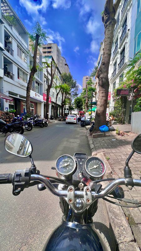 Reprenons notre histoire. Les sacs sont prêts, on décide d’aller se poser dans un café avant le départ. Au Vietnam, c’est un rituel : rares sont les cafés qui ne t’offrent pas un thé maison lors de ton arrivée. Bien évidemment, on ne fait pas les malignes. On a de l’appréhension, mais en même temps l’envie de prendre la route. Surtout moi : je pars du principe que ça ne sert à rien de rester dans cette appréhension et qu’au bout d’un moment, il faut y aller pour voir ce que ça va donner. On paye la note, direction l’hôtel. Il est temps de mettre nos sacs sur les bolides et de partir visiter le sud du Vietnam.