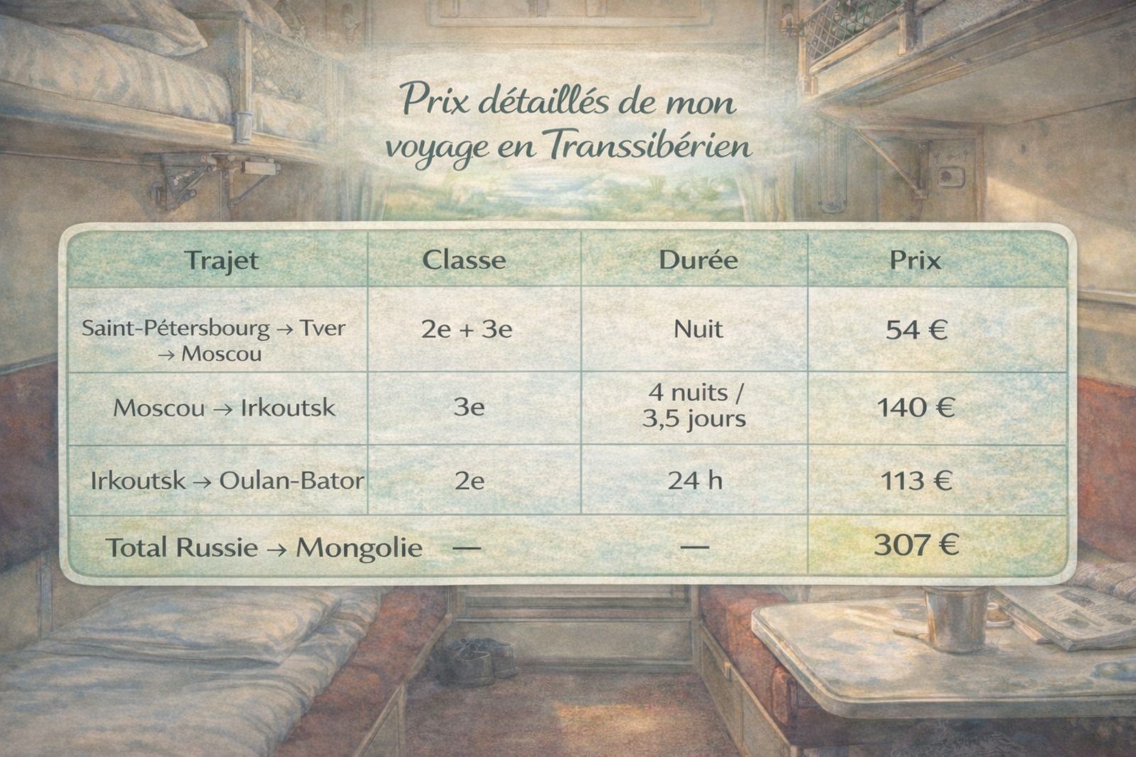 4 - LES PRIX DE MON VOYAGE AVEC LE TRANSSIBÉRIEN
